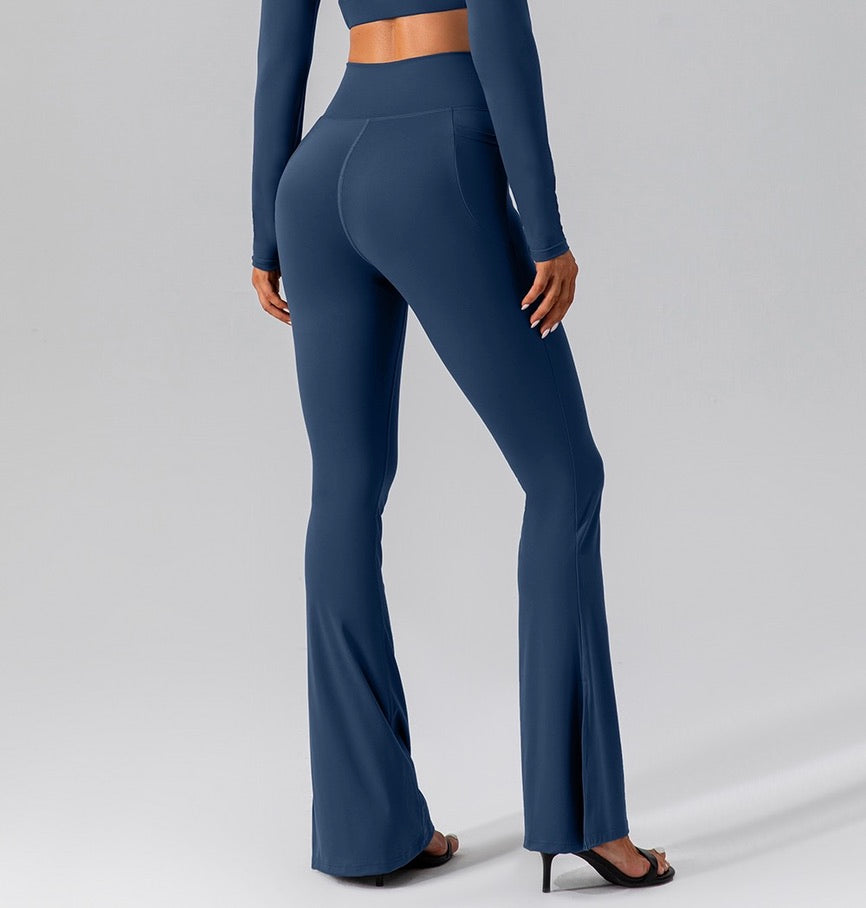 Stretchy & Sculpting High Waist Flared Leggings with Side Slit– Ideal for Workouts, Yoga & Everyday Wear